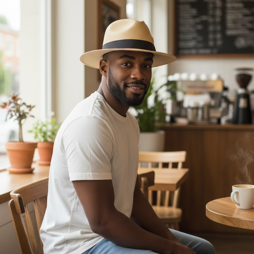 Sombrero de paja natural hecho 100% a mano por artesanos en Ecuador. Color Habano.