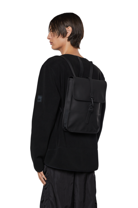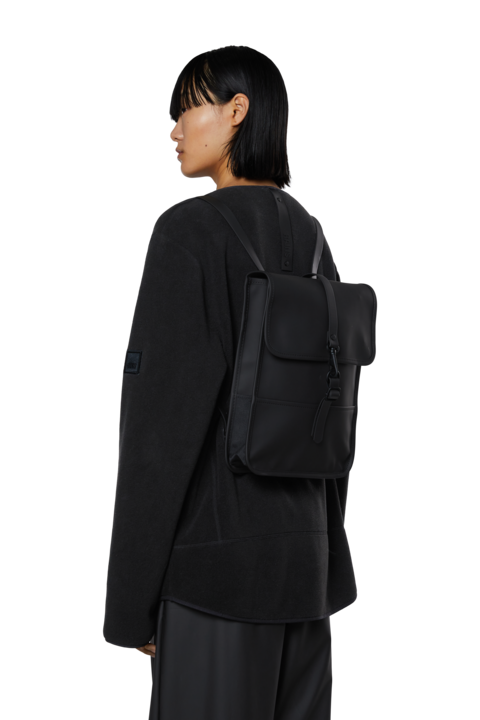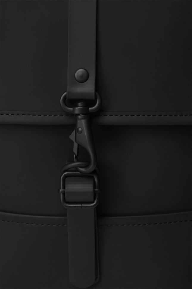 Mochila Rains backpack micro blackLa mochila Backpack Micro es una versión a pequeña escala de la Backpack, un auténtico clásico de Rains. Su silueta se caracteriza por una prominente solapa y una correa central con cierre de mosquetón. Esta mochila impermeable de líneas limpias y atemporales presenta un bolsillo interior para el portátil.