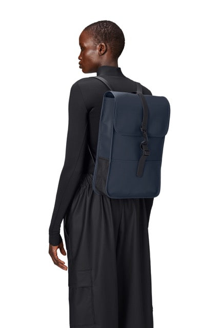 La Mochila Rains backpack mini navy, es una versión compacta de la Backpack, un auténtico clásico de Rains. Su silueta se caracteriza por una prominente solapa y una correa central con cierre de mosquetón. Esta mochila impermeable de líneas limpias y atemporales presenta un bolsillo interior para el portátil, un compartimento principal y un bolsillo exterior oculto en el panel trasero para el móvil.
