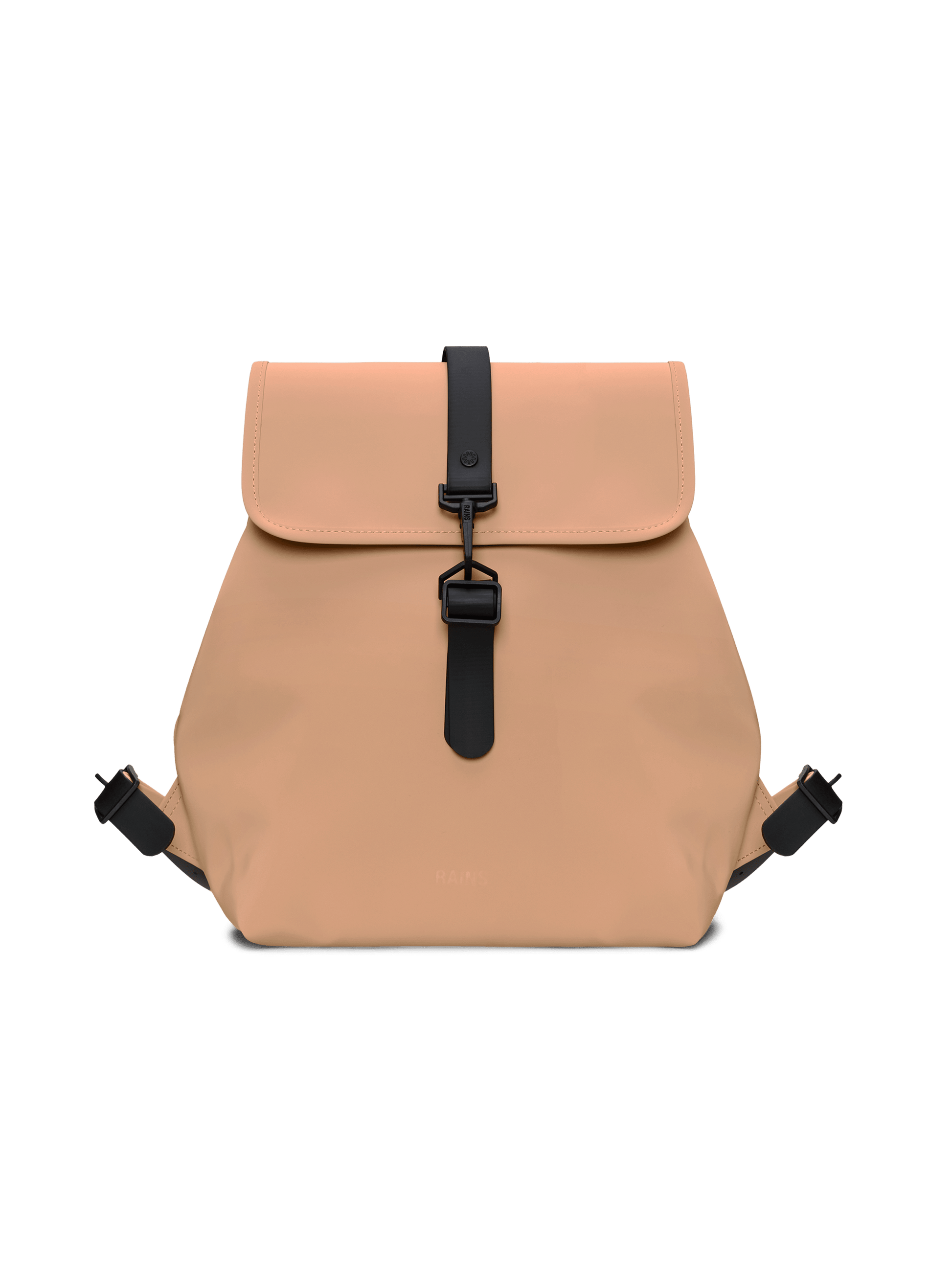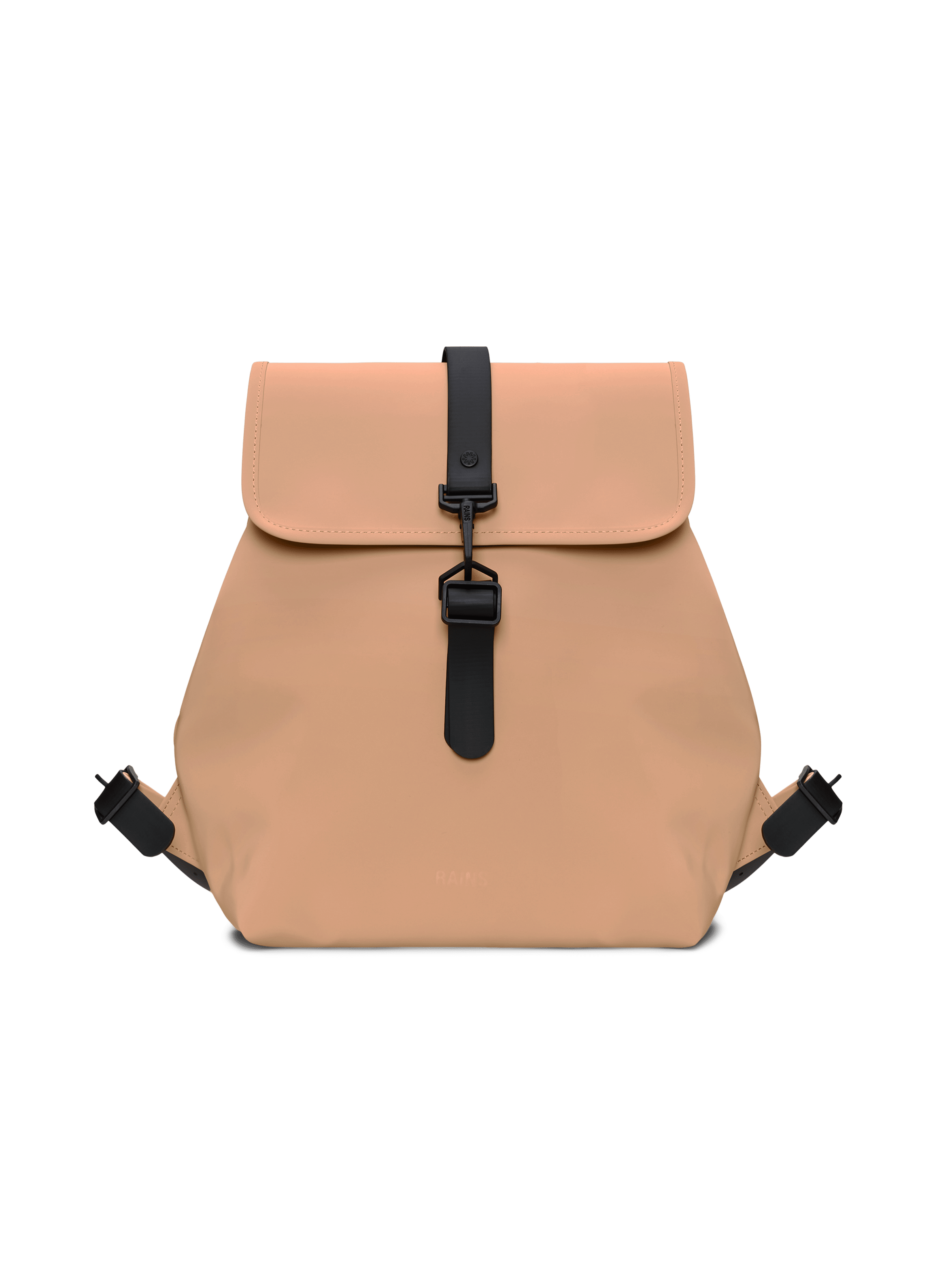Bucket Backpack está confeccionada en el tejido de PU característico de Rains, diseñado para ofrecer robustez en el transporte, durabilidad y un suave acabado.