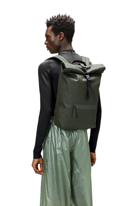 Mochila rains rolltop rucksack green w3Rolltop Rucksack es la versión de Rains de una mochila de ciclismo. Confeccionada con el tejido impermeable característico de Rains, esta funcional mochila tiene un cierre enrollable con una correa ajustable con un lazo para candado de bicicleta o similar. La mochila enrollable tiene un gran compartimento principal, un bolsillo frontal de fácil acceso y un compartimento para portátil de acceso lateral. Se completa con una parte trasera acolchada, correas de hombro ajustables, una correa para el pecho y herrajes originales de Rains.