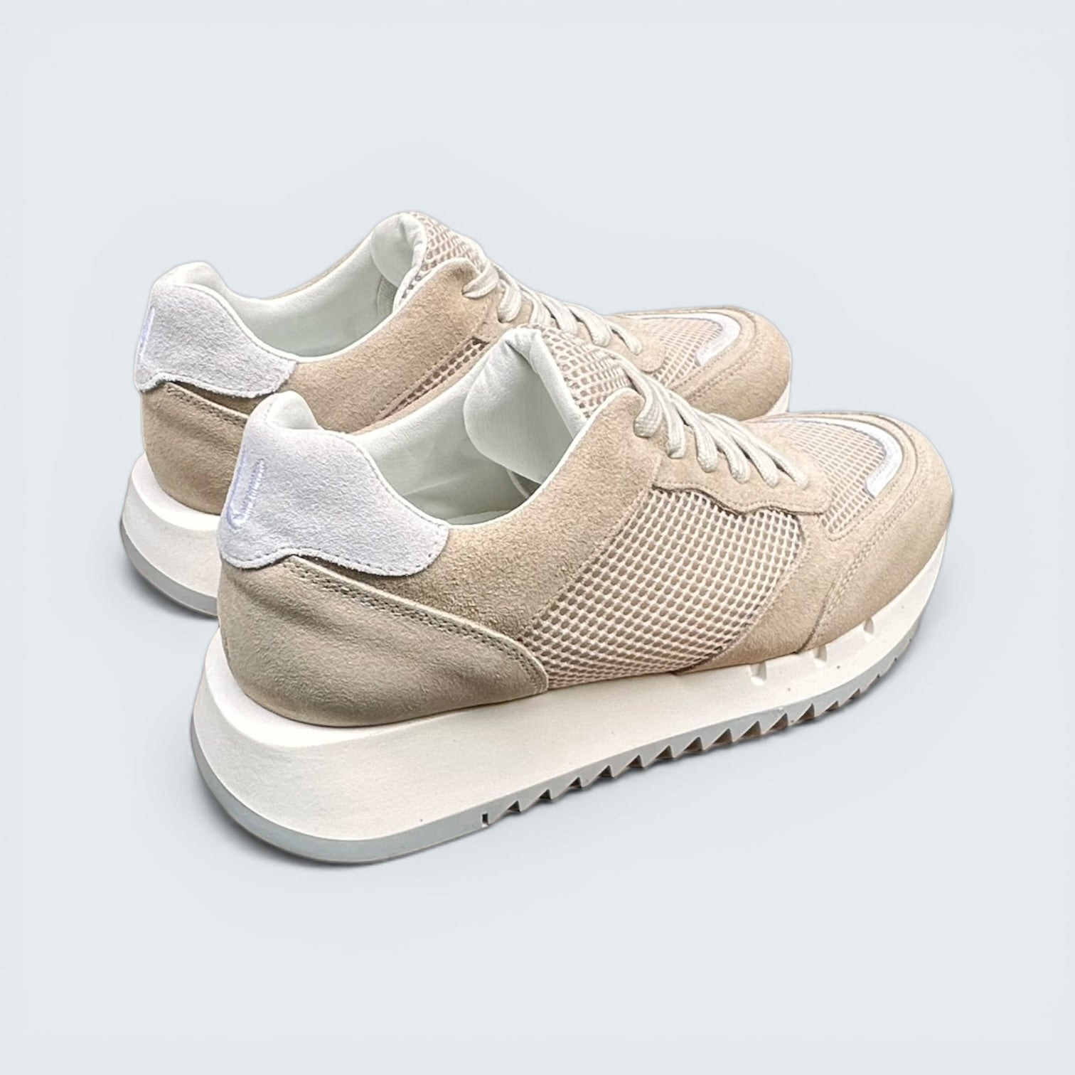 Fabricados en ante de alta calidad con acabados suaves y sutiles detalles en contraste, estos zapatos cuentan con un tacón de cuña de 3,5 cm que añade altura y una silueta favorecedora sin sacrificar la comodidad. Su suela resistente proporciona estabilidad y sujeción para el día a día.