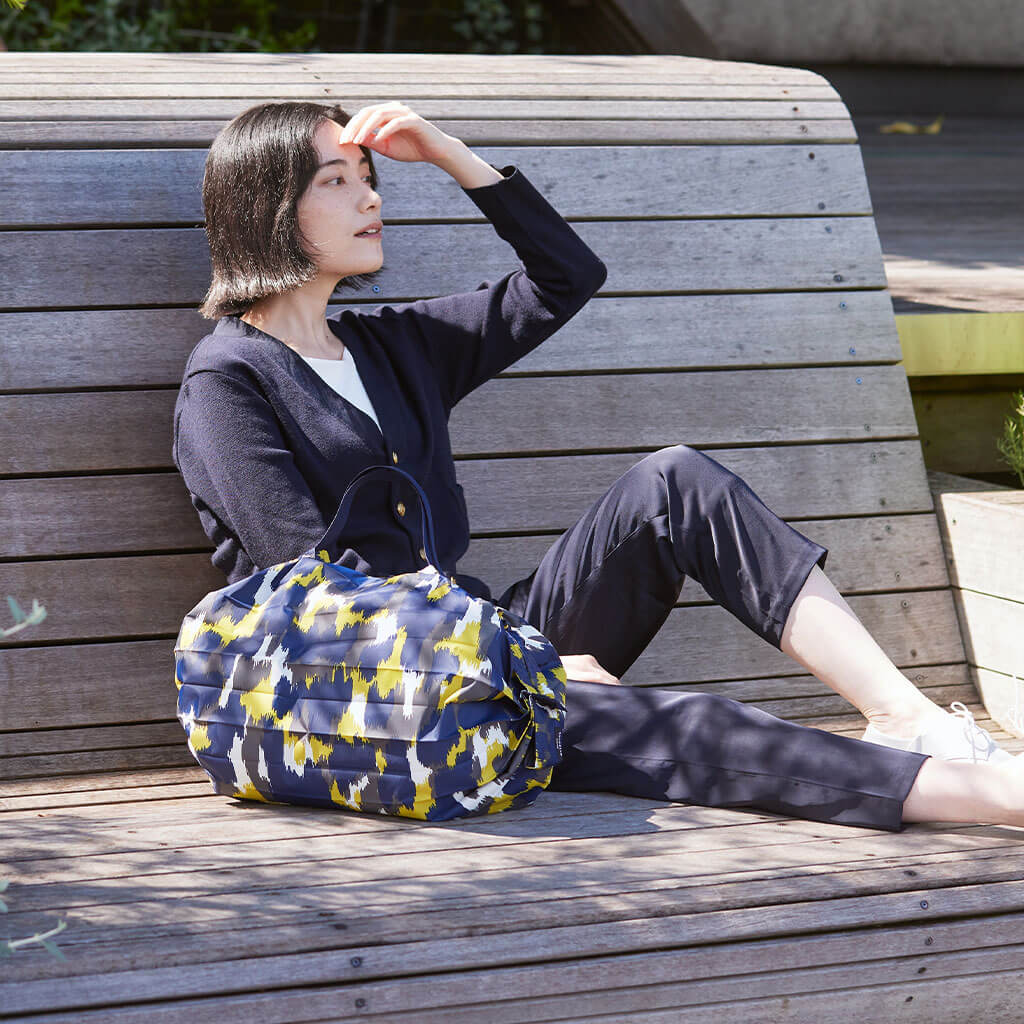 Bolsa compacta diseñada en Japón, con un sistema patentado de cierre con un tirón desde sus extremos. La bolsa tiene unos pliegues de acordeón, que permiten que la bolsa se expanda aumentando su capacidad.