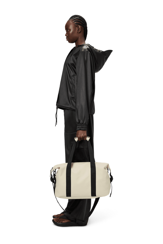 The Hilo Weekend Bag Small is Rains' take on the essential travel bag: the smallest of three sizes. This travel favorite is clean and contemporary, balancing Rains' signature waterproof fabric with a distinctive strap and hardware details.