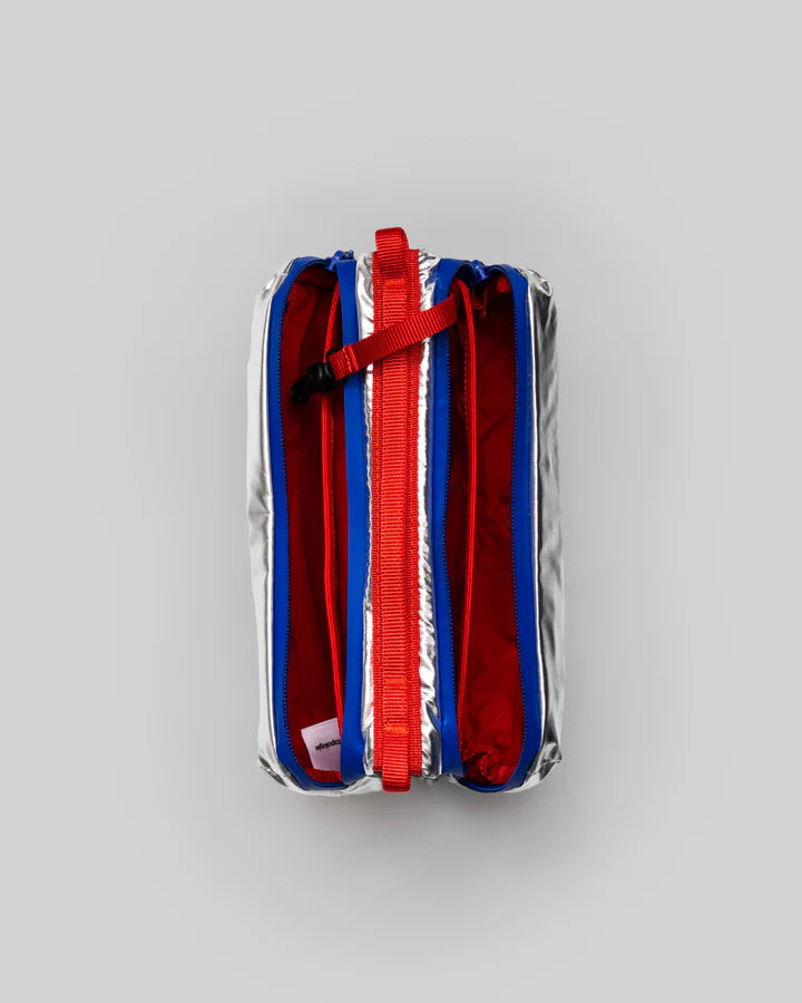 Sacoche bag medium satellite metallic Topologie Designed to discreetly carry water bottles, the Bottle Sacoche Medium offers a stylish way to transport yours and avoid single-use plastic bottles. It also functions as an everyday crossbody bag and can hold your phone, keys, and wallet. The quilted edition adds a soft, padded touch to the sleek design, perfect for those seeking a cozy and stylish complement to their outfit.