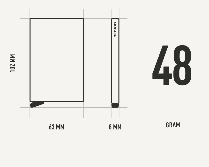 The SECRID Cardprotector is the heart of our collection and our most minimalist wallet. The patented mechanism allows you to slide your cards in with a simple motion for instant access. The aluminum casing protects your cards from bending, breakage, and unwanted wireless communication.