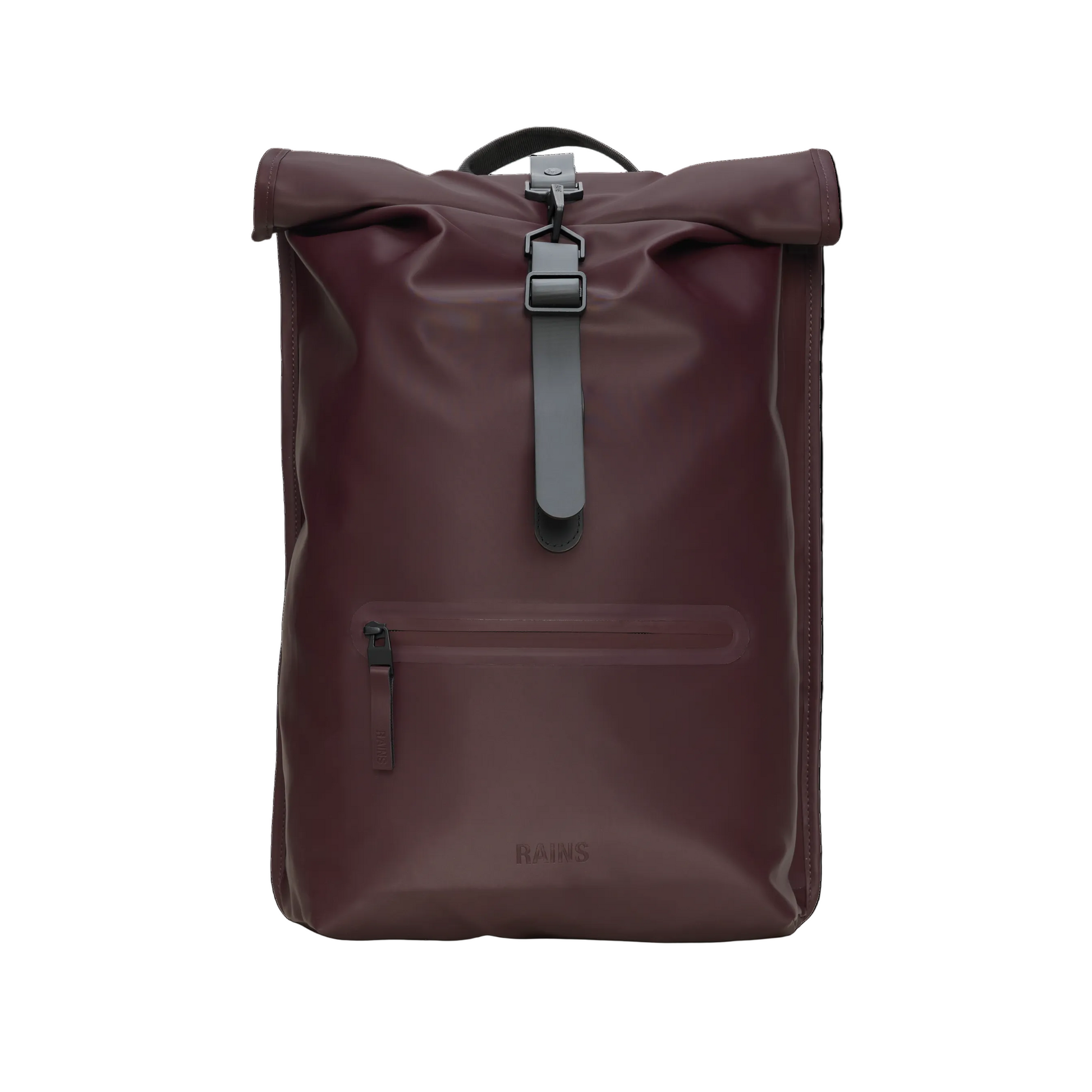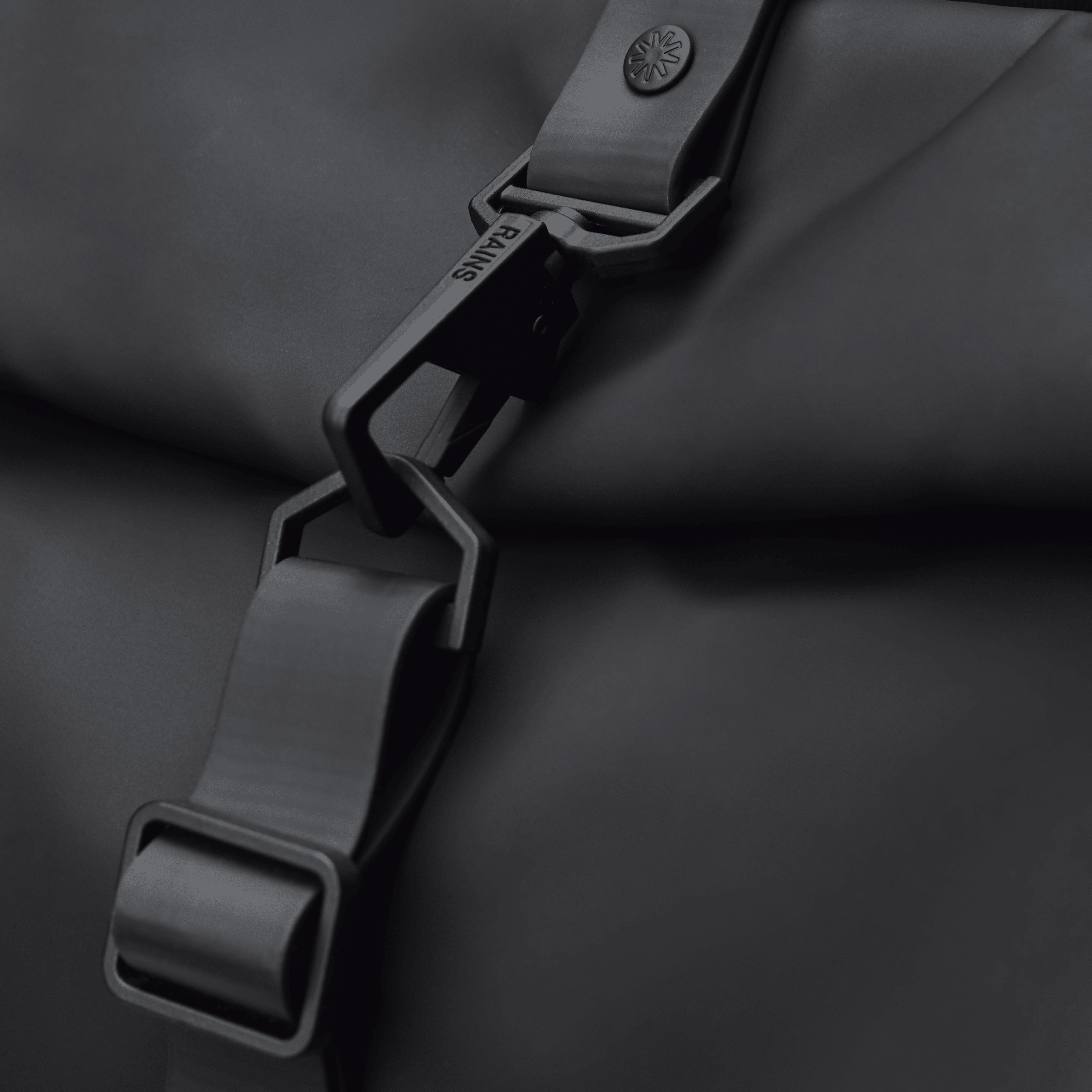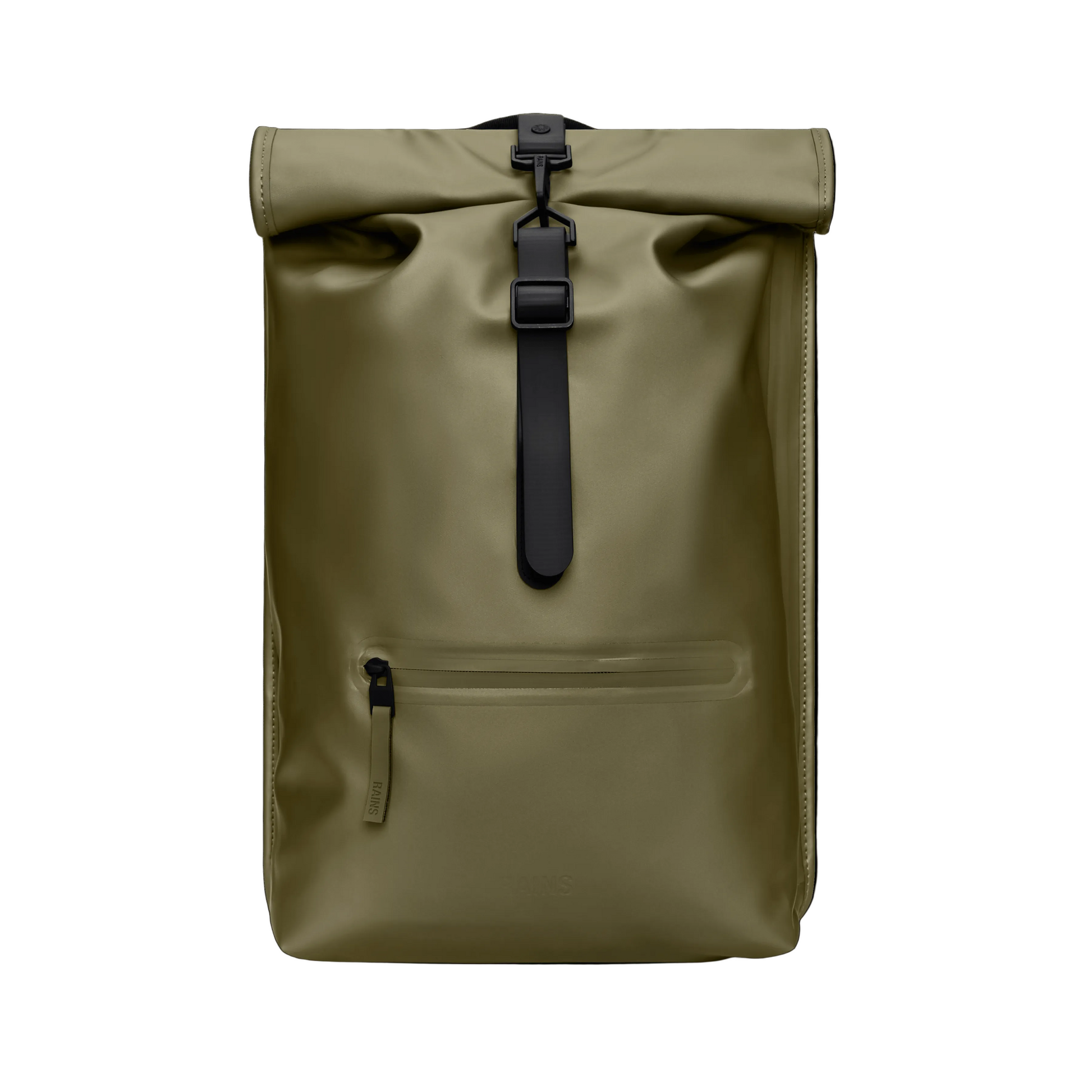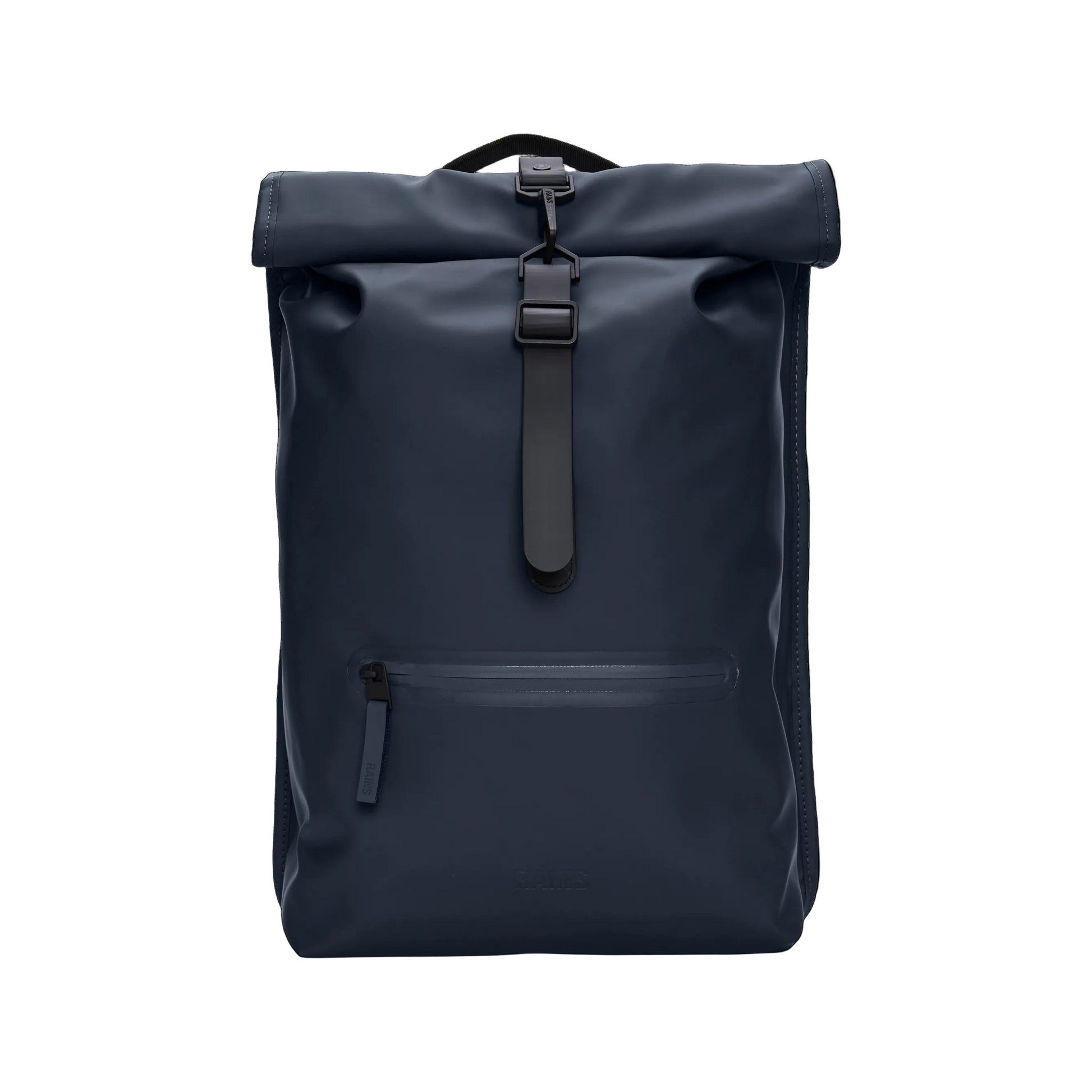 Rolltop Rucksack is cut from Rains' signature PU fabric, engineered for carrying strength, durability and a smooth feel.