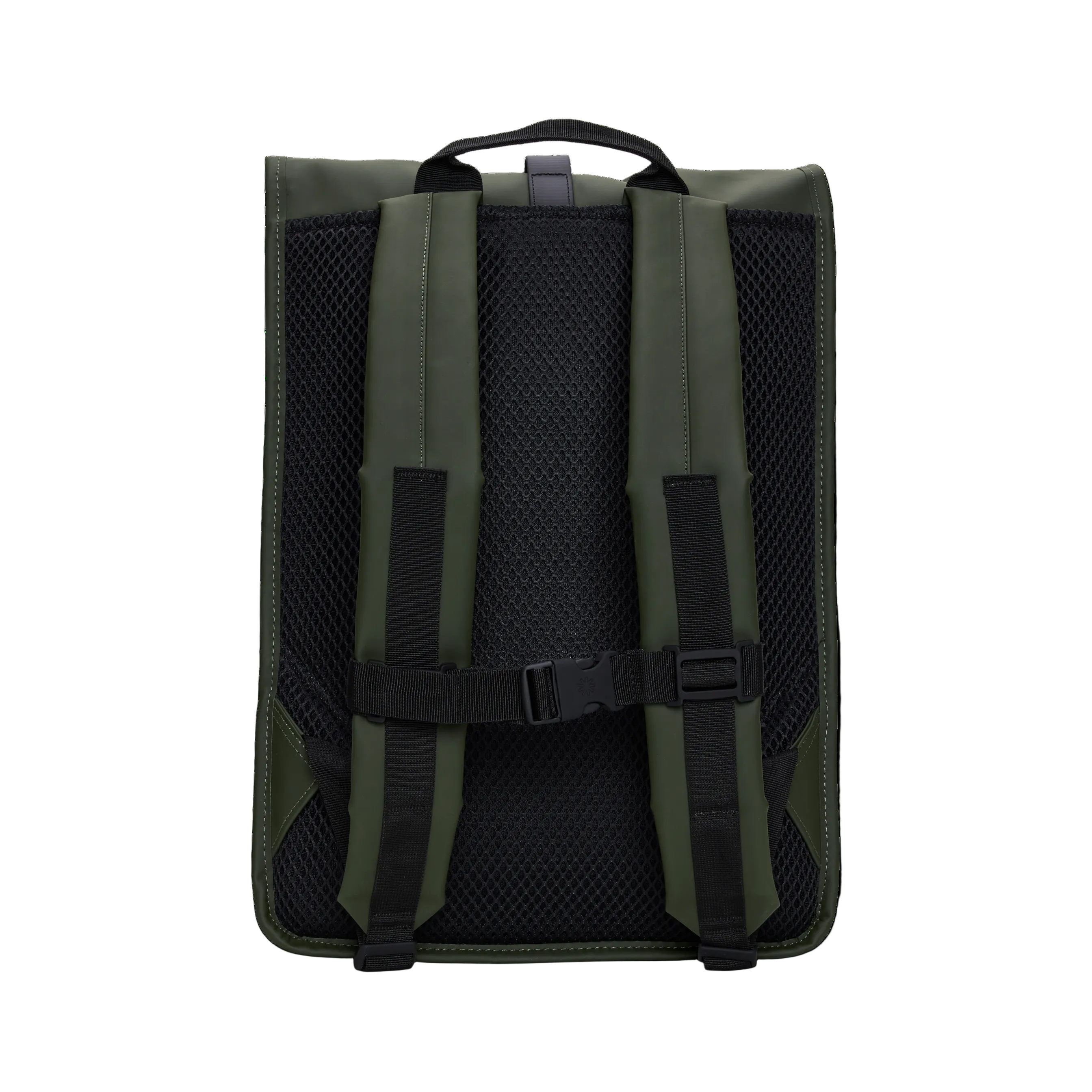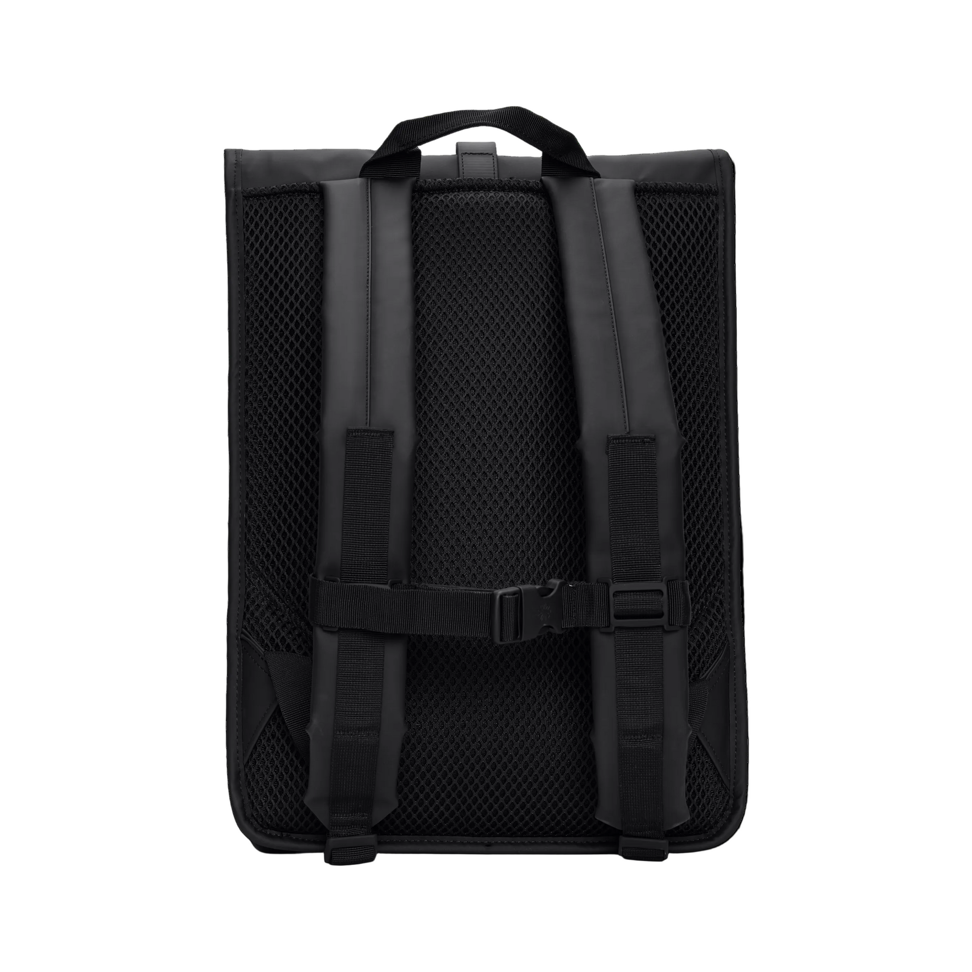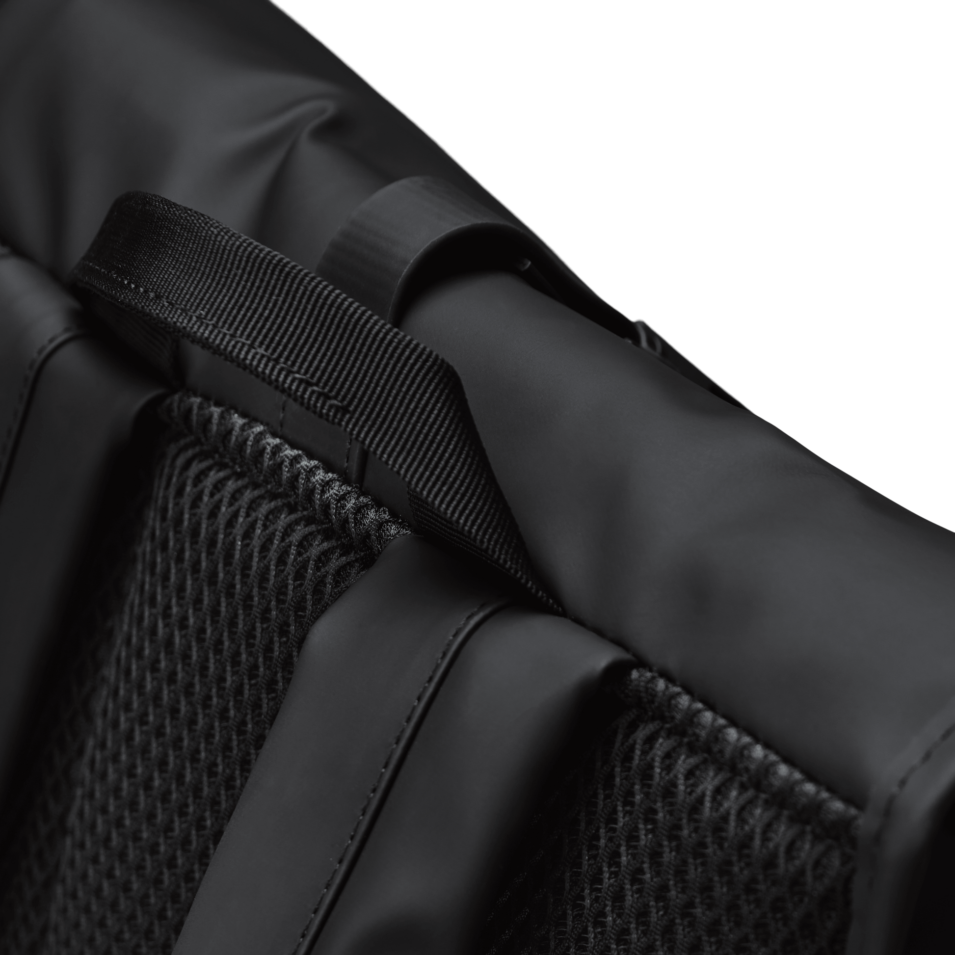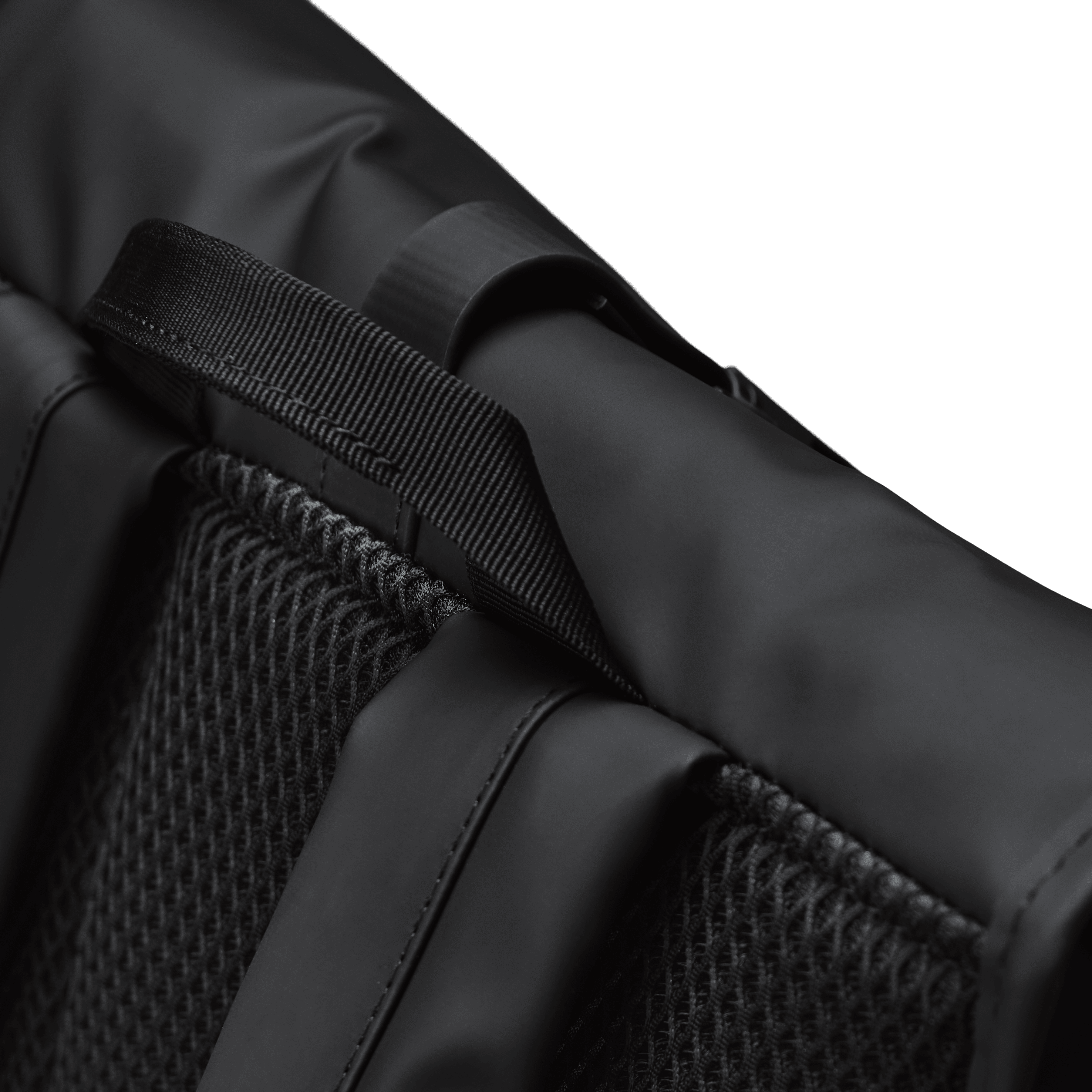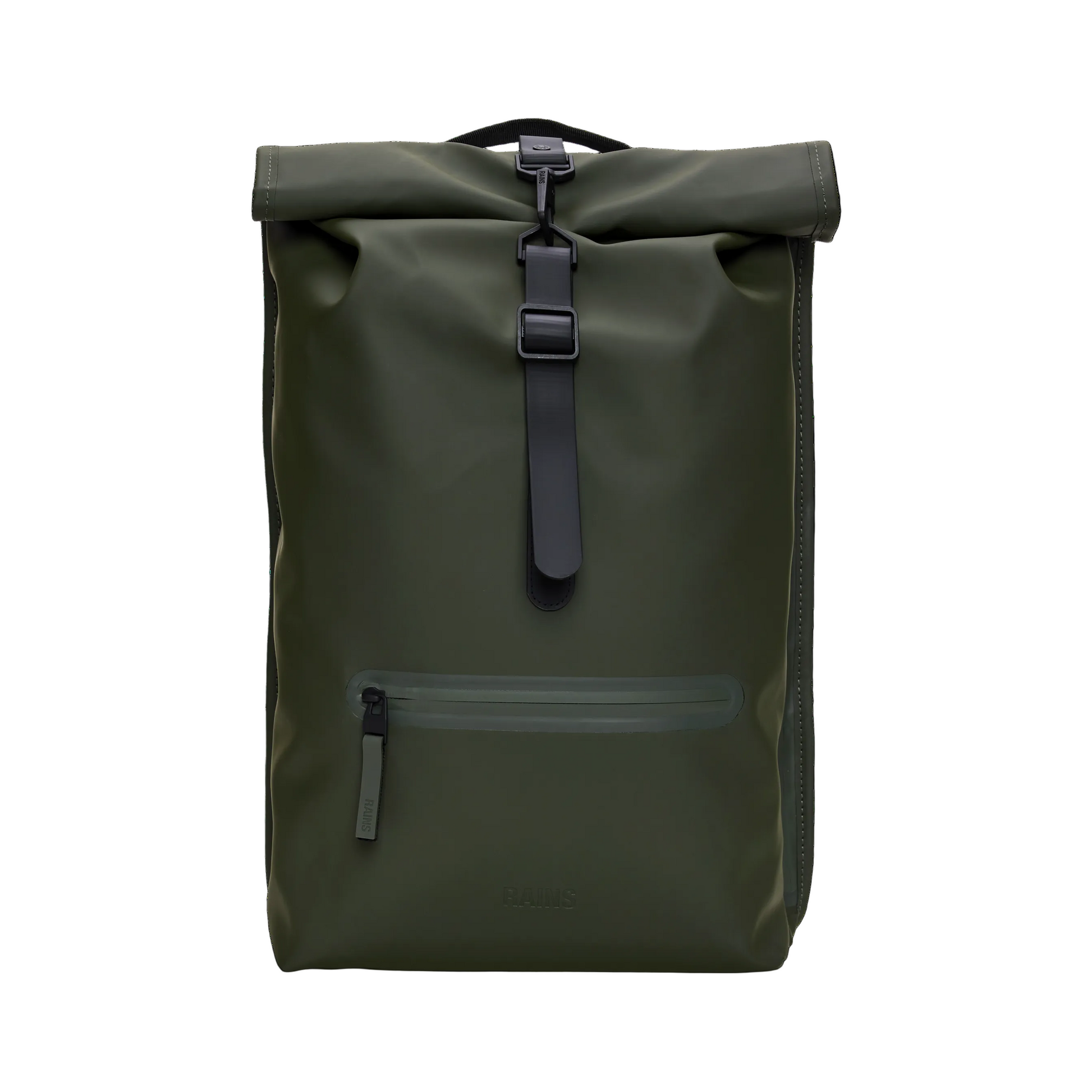 Rolltop Rucksack is cut from Rains' signature PU fabric, engineered for carrying strength, durability and a smooth feel.