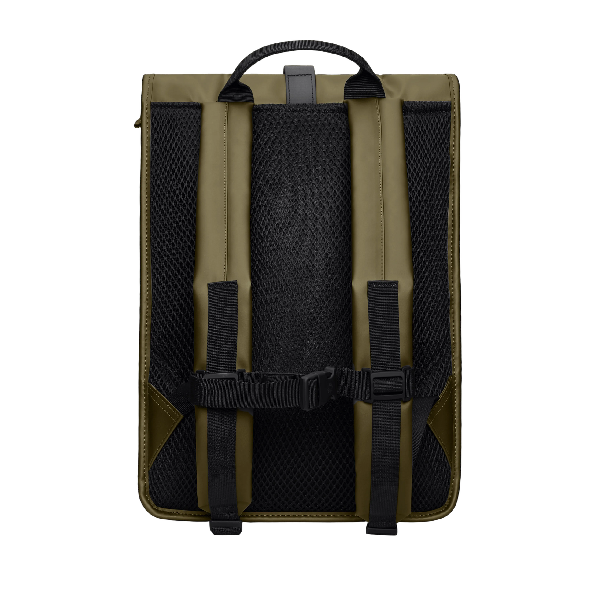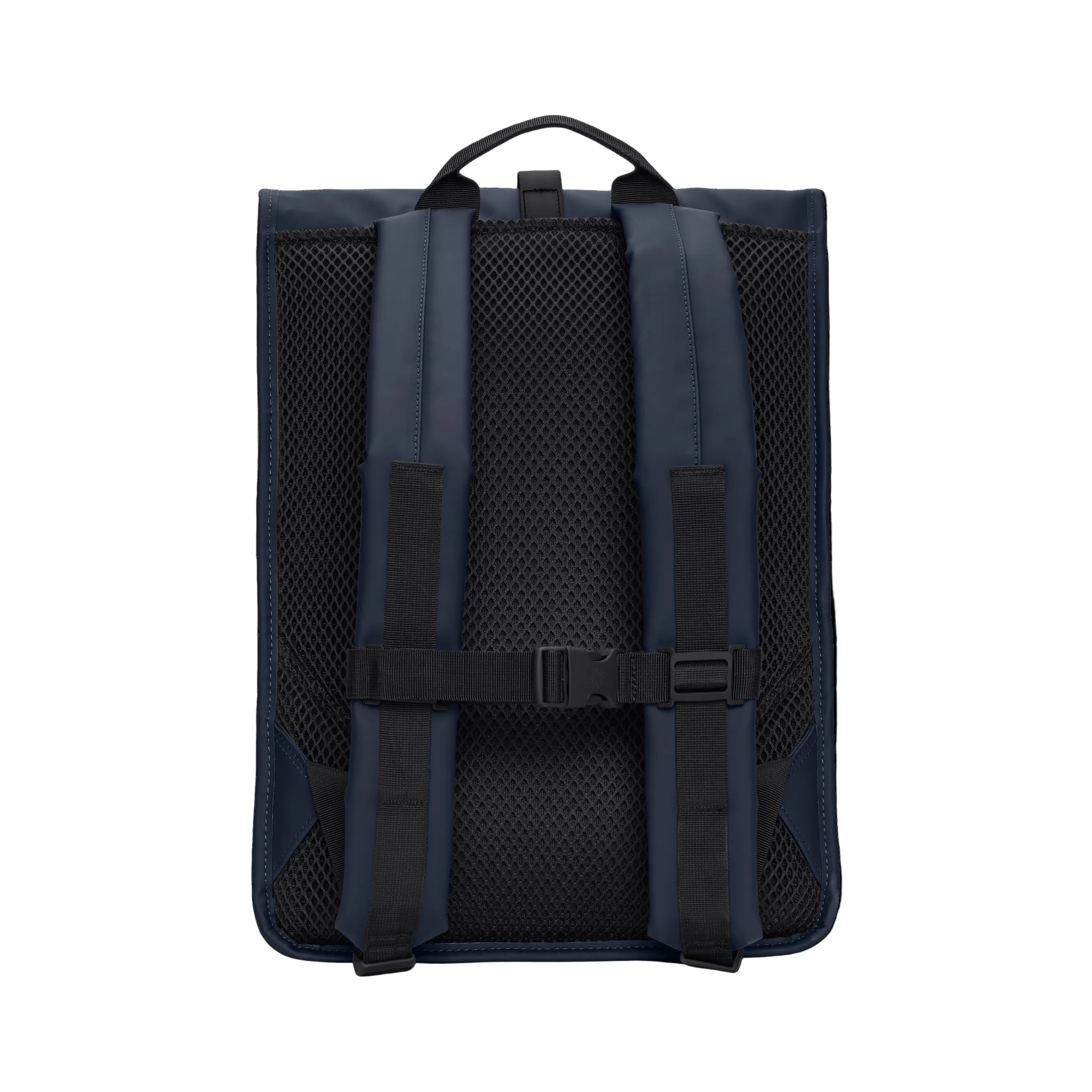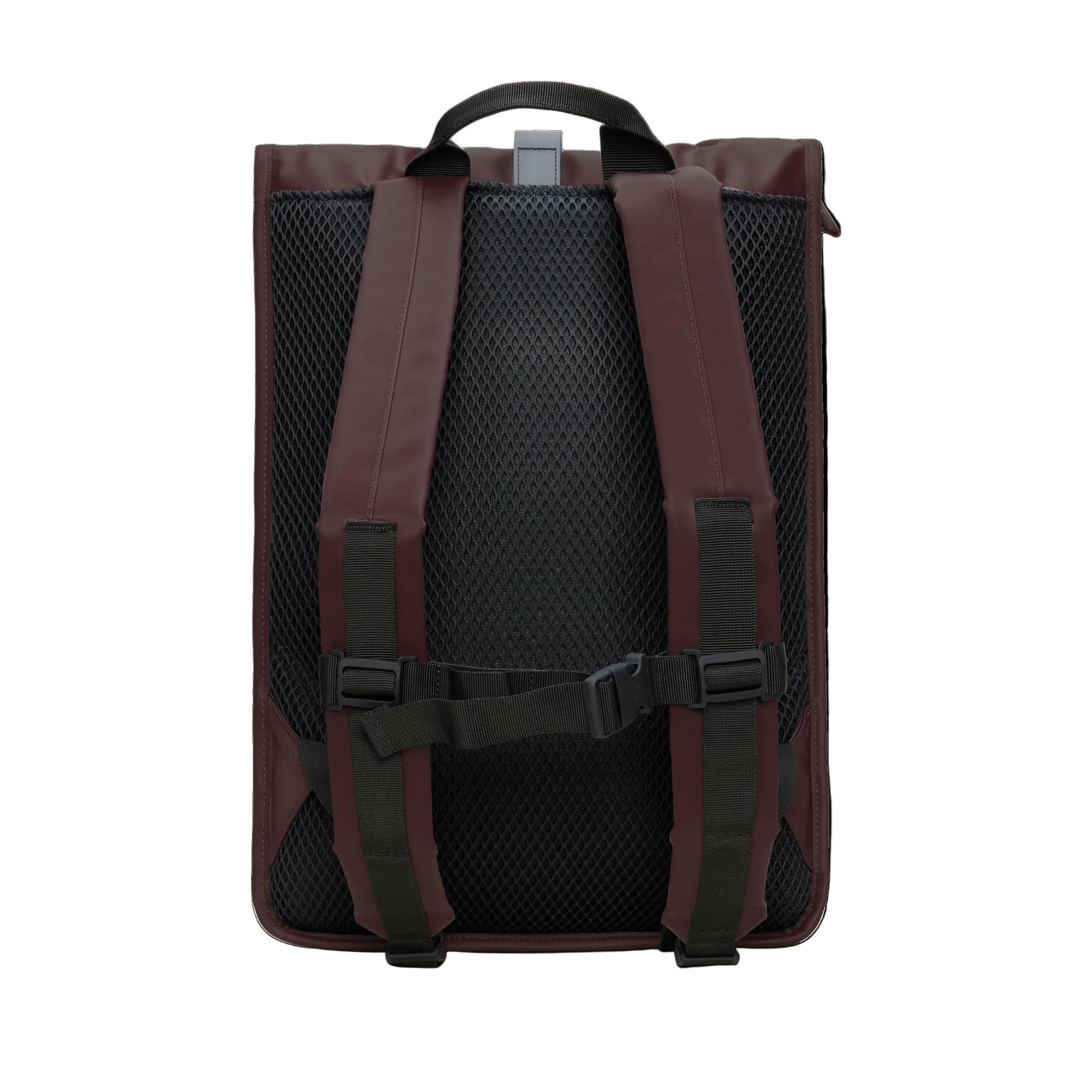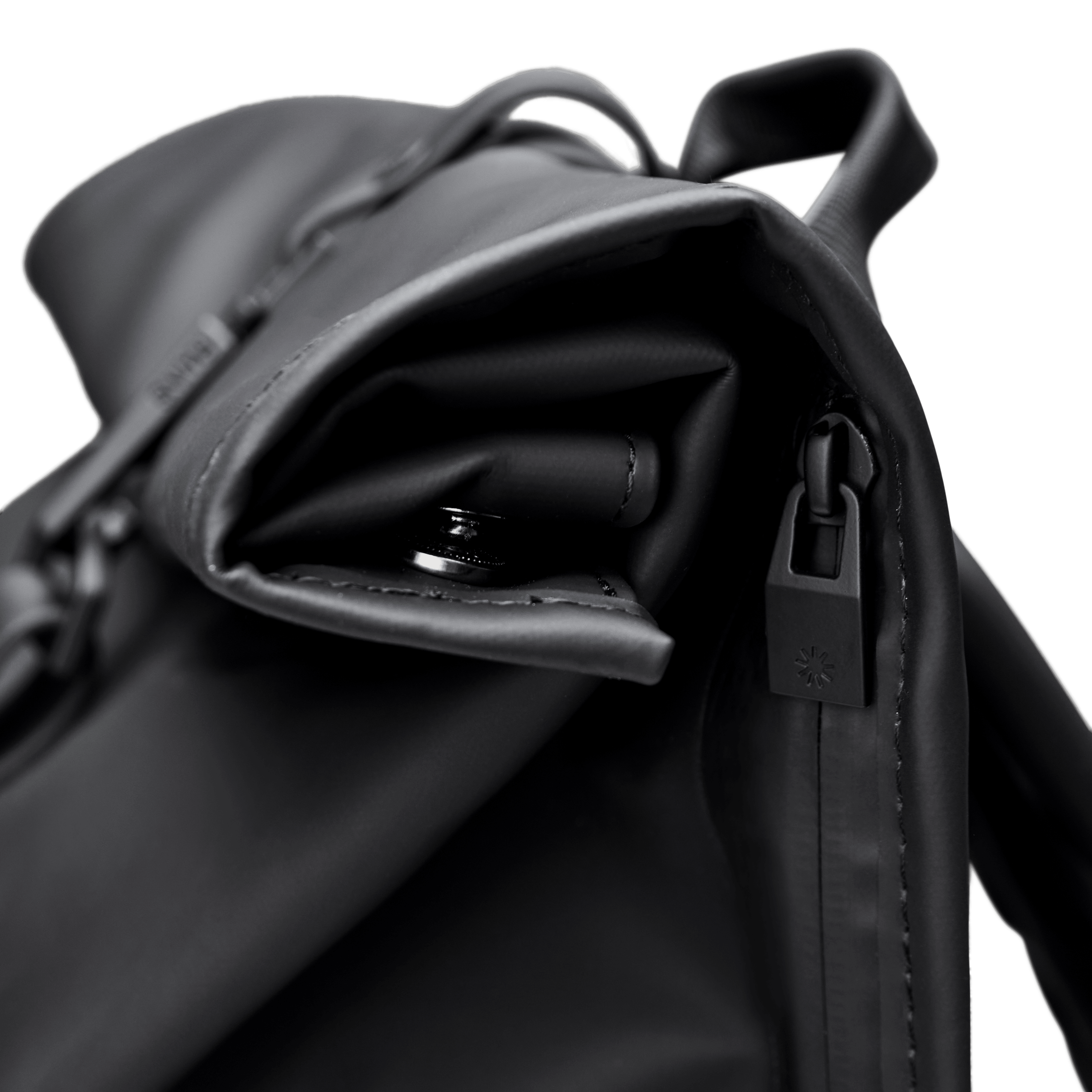 Rolltop Rucksack is cut from Rains' signature PU fabric, engineered for carrying strength, durability and a smooth feel.