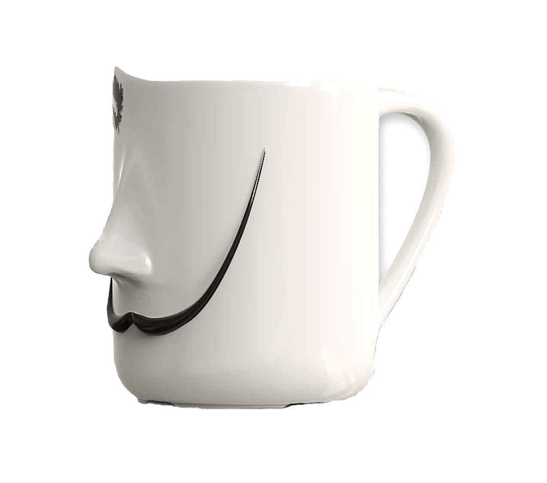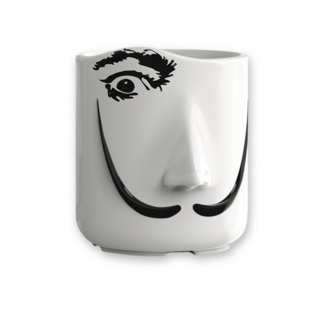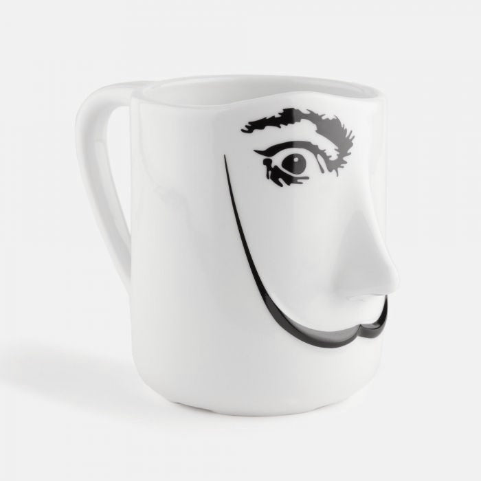 Porcelain mug with a design inspired by the characteristic mustache of the artist Salvador Dalí.